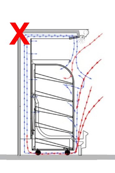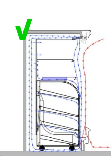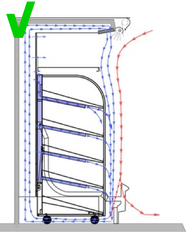 Vil ikke fungere optimalt med tanke på temperatur og energiforbruk, da luftsirkulasjon / luftgardinen som må være i fremkant av disken ikke kan opprettholdes.